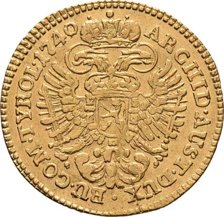 13. Dukát 1740, Praha-Scharff, J.61b, MKČ.1788, 3.450g,