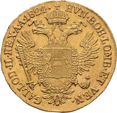 19. Dukát 1824 E, Karlovský Bělehrad, 3.471g, nep.hr.,