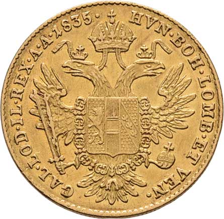 20. Dukát 1835 E, Karlovský Bělehrad, 3.457g, dr.hr.,