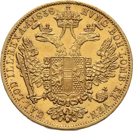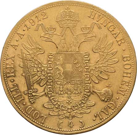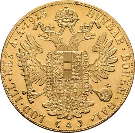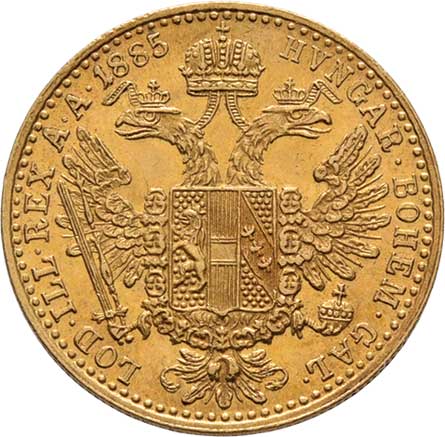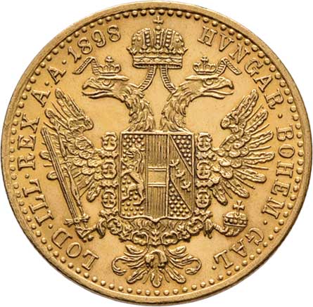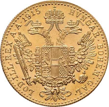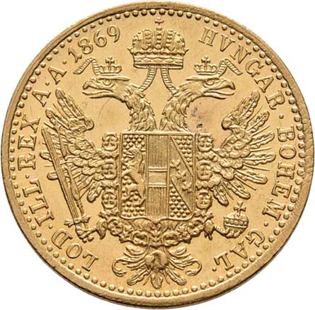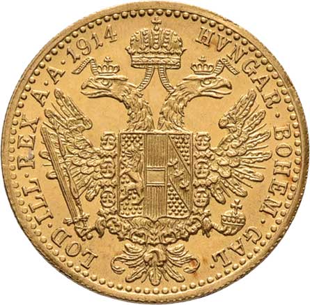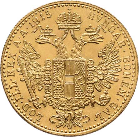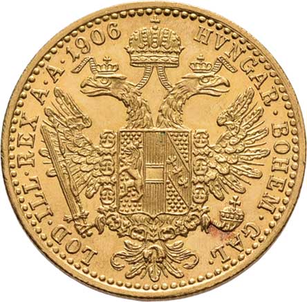 5 Dukát (17.445g), 2 Dukát (6.974g), Dukát (3.487g),