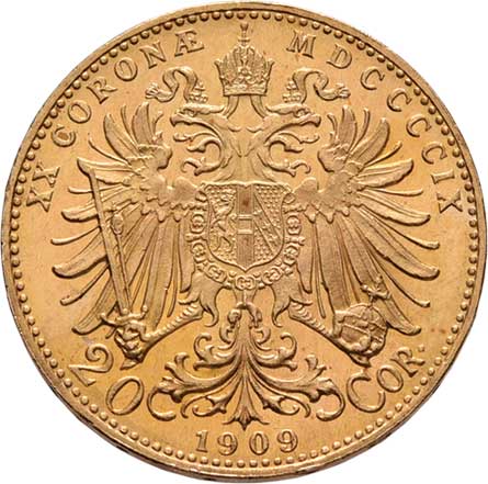 59. 20 Koruna 1909 - Marschall, 6.776g, nep.hr.,