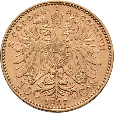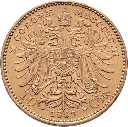 70. 10 Koruna 1897, 3.372g, nep.hr., nep.rysky, pěkná