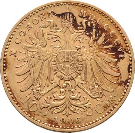 72. 10 Koruna 1906, 3.372g, nep.hr., nep.rysky, skvrny,