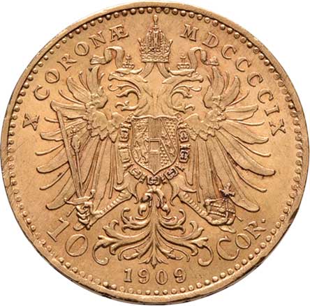 73. 10 Koruna 1909 - Marschall, 3.385g, dr.hr.,