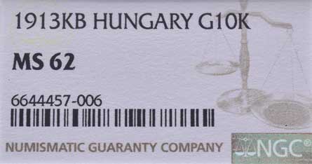 79. 10 Koruna 1913 KB (3.35g), mince zatavena v etui NGC