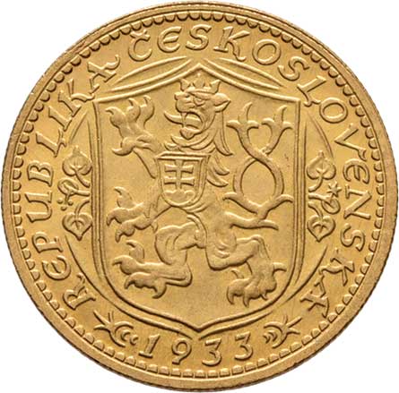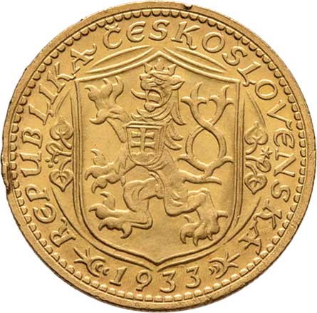 95. Dukát 1933 (raženo 57.597 ks), 3.486g, zásek na