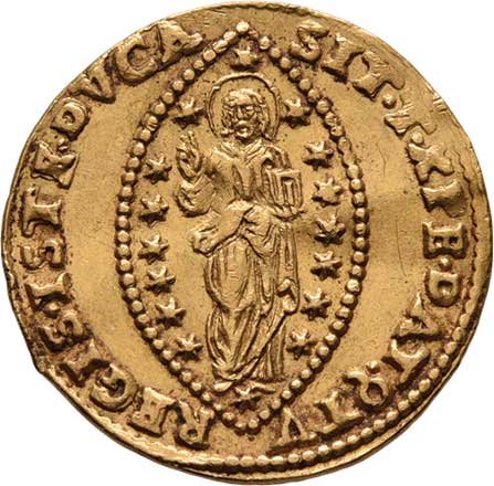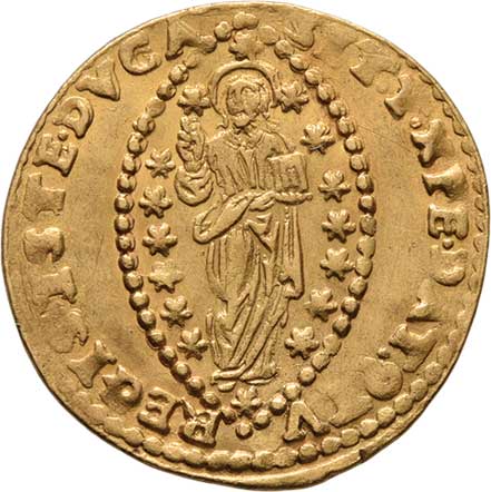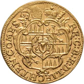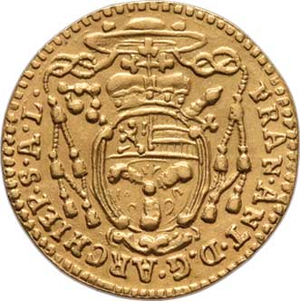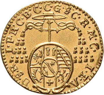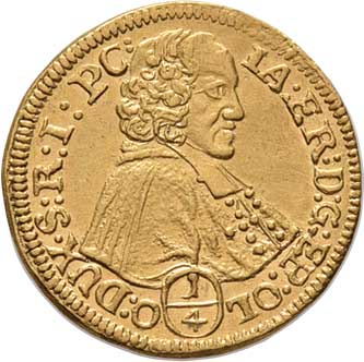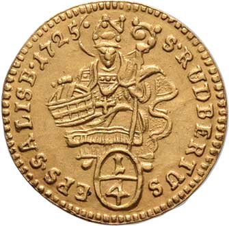 129. 1/4 Dukát 1725, svatý Rupert, opis / znak, opis,