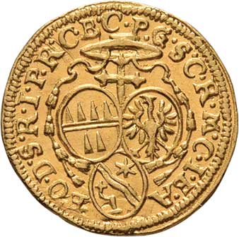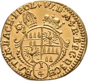 126. 1/4 Dukát b.l. - znak pod kloboukem a mitrou, opis /