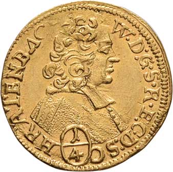 128. 1/4 Dukát b.l. - poprsí zprava, opis / znak pod