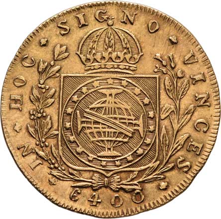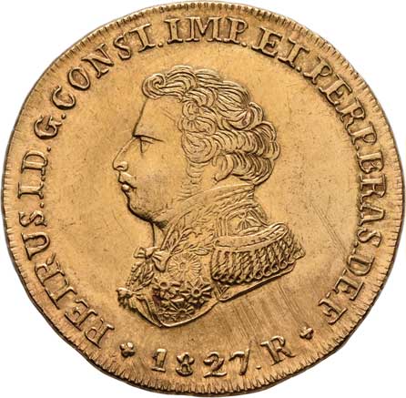 184. 6.400 Reis 1827 R, Rio de Janeiro, KM.370.1 (Au917,