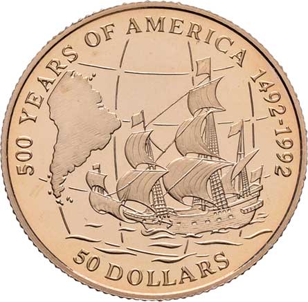 185. 50 Dolar 1992 - 500 let objevení Ameriky - mapa Jižní
