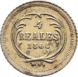 190. 4 Reales 1864 - patrně dobové falzum ke škodě oběhu