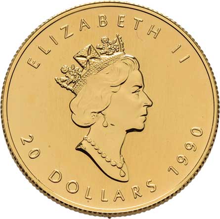 191. 20 Dolar 1990 - javorový list, KM.190 (Au999),