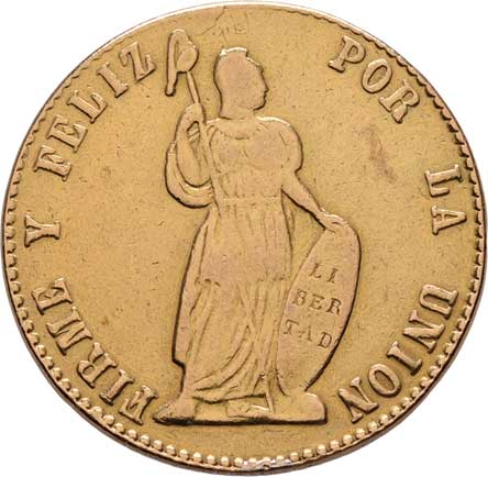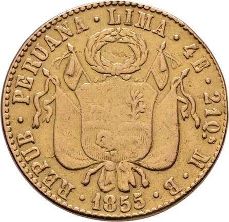194. 4 Escudos 1855 LIMA-MB, KM.150.4 (Au875), 13.238g,