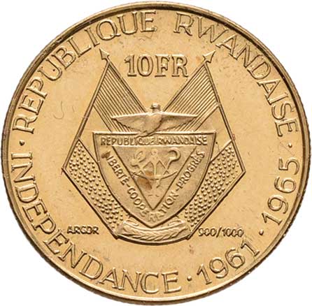 196. 10 Francs 1961 (1965) - president Gregoire Kayibanda,