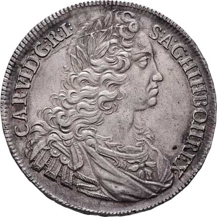 1717 - poprsí zprava, opis / Herakles s kyjem, písmo, 44mm, 29.626g, M.1507, H.2597, hr., dr.rysky R! |