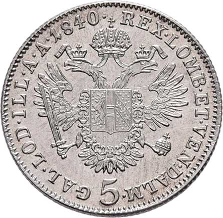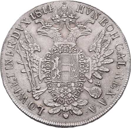 hlava zleva, opis / korunov. znaky Milána a Benátek, vavříny, písmo, Sign., 42mm, 34.965g, Nov.R.1c, téměř |