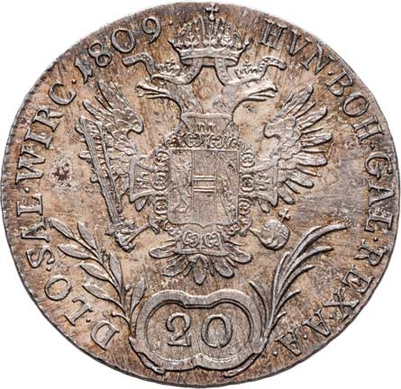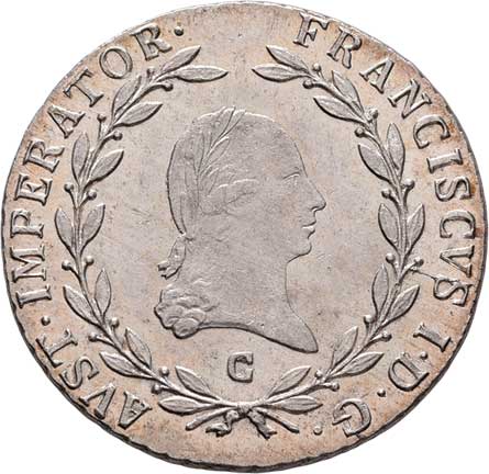 zeměkoule v oblacích, opis / koruna a 8-řádk. nápis, Ag 20mm, 1.972g, M.1368, Nov.F.47b, okr., patina |
