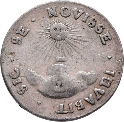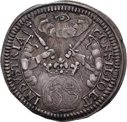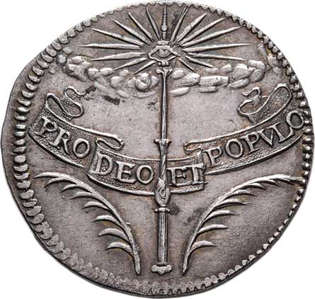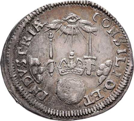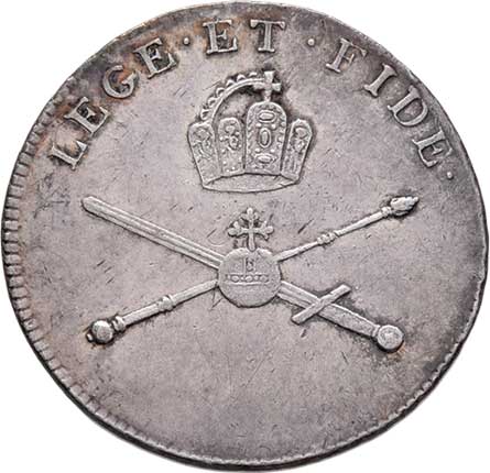 pod Božím okem ruce s mečem a žezlem nad zeměkoulí / koruna a nápis, Ag 19mm, 1.339g, N.13b, M.874, patina |