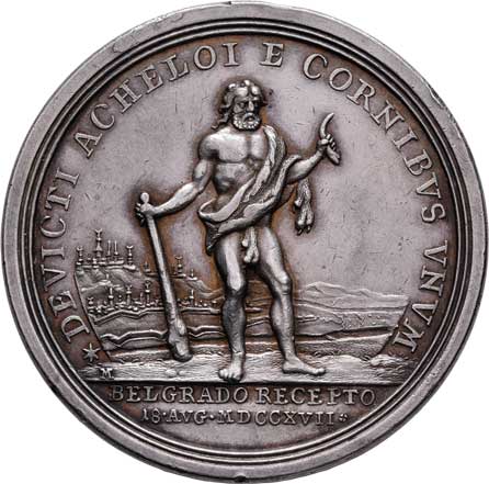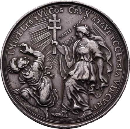 - personif. Víra zahání Turka, opis / město a nápis, Ag 49mm, 44.640g, M.1066, Wel.7309, hr., rysky RR! |