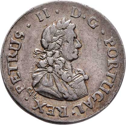 portugalský král zprava, opis / slunce nad oblaky, opis, Sign.CIL, Ag 18mm, 2.938g, Nov.L.93a, Forst.276 |