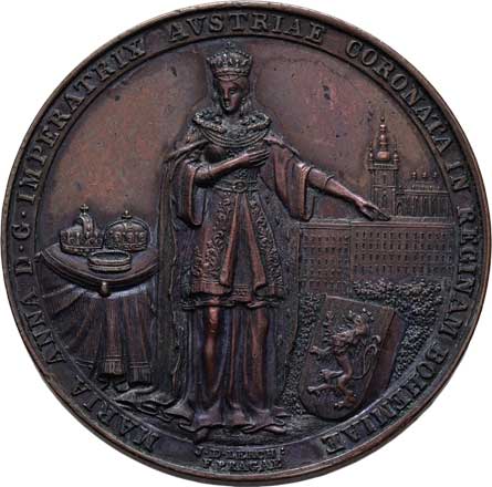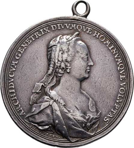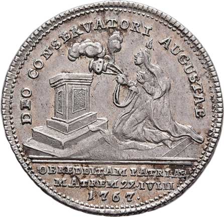 - portrét, opis/ císařovna klečící před oltářem, opis a nápis, Ag 21mm, 2.141g, ČS.1368, M.1979, patina |