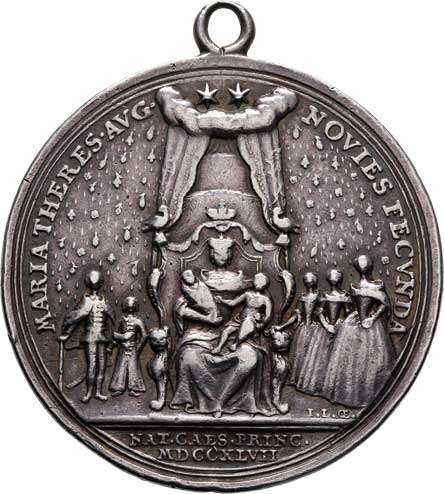 - portrét zprava, opis / císařovna na trůnu s dětmi, písmo, Sign., Ag 40mm, 21.778g, ouško, hlaz., škr. R! |