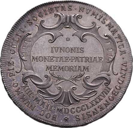 poprsí zprava, opis / 3-řádk. nápis v kartuši, opisy, nápis na hraně, Sign., Ag 41mm, 28.086g, nápis na hr. |