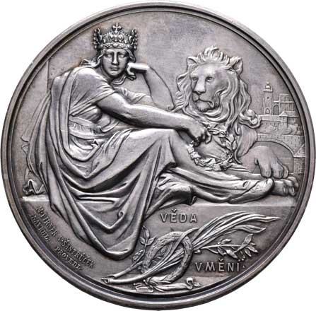 - poprsí zprava, české opisy / sedící Čechie, lev, ratolest, nápis, Sign., Ag800, 65mm, 113.956g, rysky |