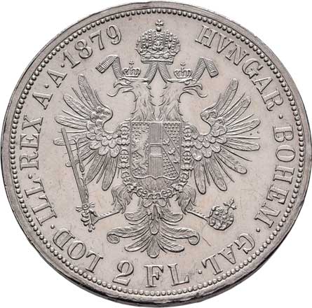 | 712. | 2 Zlatník 1879 - Stříbrná svatba, 24.642g, nep.hr.,
