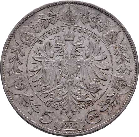| 769. | 5 Koruna 1907, 24.025g, nep.hr., dr.rysky, pěkná