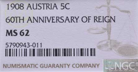 | 771. | 5 Koruna 1908 - jubilejní - zataveno v etui NGC