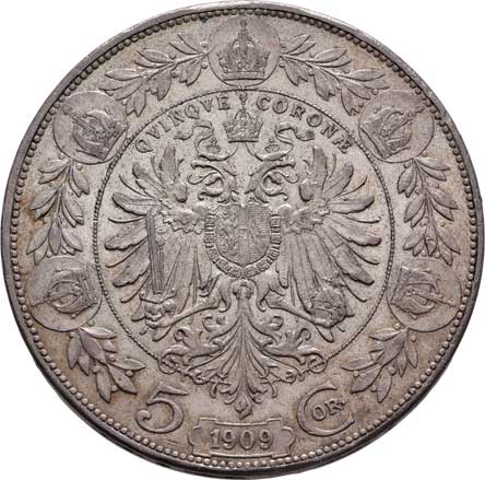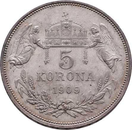 | 773. | 5 Koruna 1909 - Schwartz, 23.994g, nep.hr., dr.rysky,