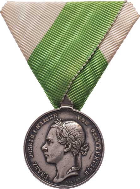 Marko.361b, VM.51-II-A, po roce 1860, s válcovitým ouškem a závěsným kruhem, krásná patina, původ. stuha |