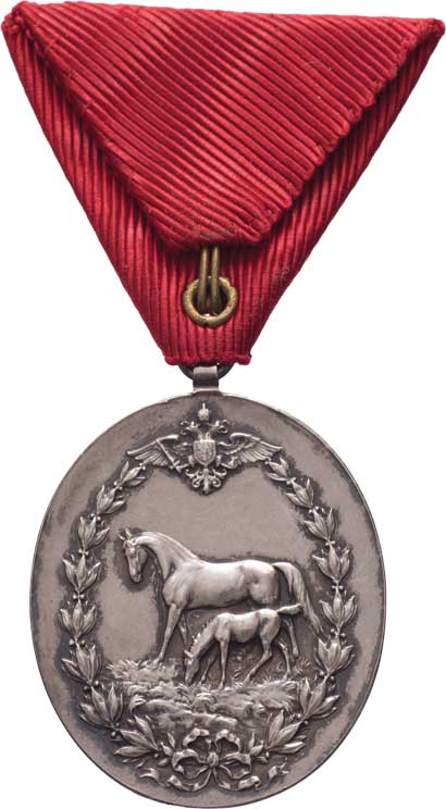 | 1014. | Oválná stříbrná záslužná medaile za chov koní,