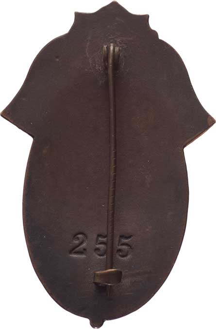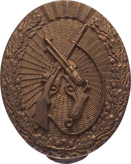 puškou na rameni, opis, Nesign., postříbřený odznak se závěsným ráhnem a dvěma střapci RR! |