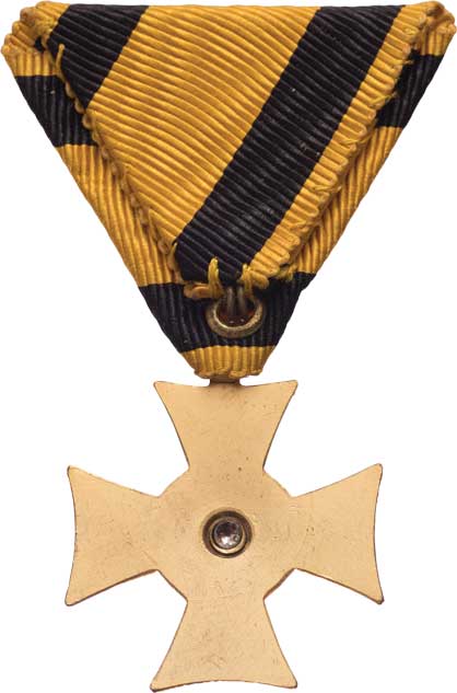 Marko.360b, VM.51-II, Nepunc. (1860-66), s válcovitým ouškem a závěs. kruhem, krásná patina, bez stuhy RR! |