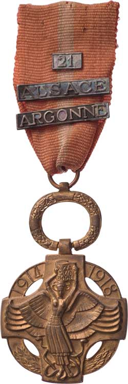 I.francouzské vydání, původní závěs, původní stuha se štítky "21", "ALSACE" a "ARGONNE" |