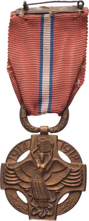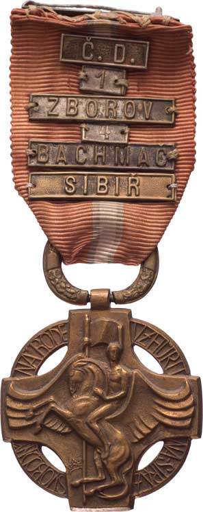 II.vydání (1920-1938), na stuze přišité štítky "ČD", "1", "ZBOROV", "4", "BACHMAČ" a "SIBIŘ" |