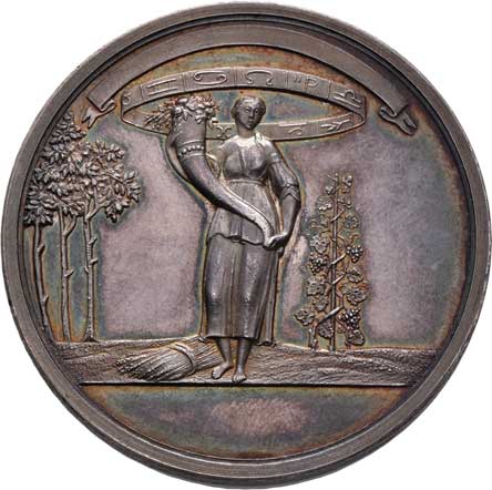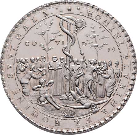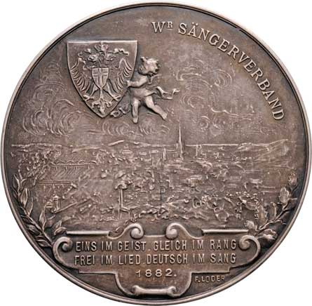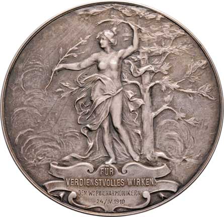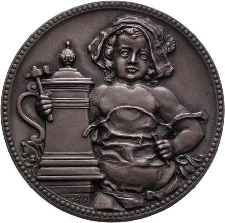 u stromu, 4-řádk.nápis / putti se znakem, pohled na město, 3-řádk.nápis, Sign., patin. Ag 46mm, 29.932g |