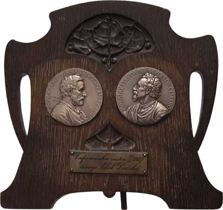 sedm poprsí, opis a nápis / 8-řádkový nápis, Sign., litý bronzový ovál 80/60 mm, 110.104g, pěkná pat. R! |