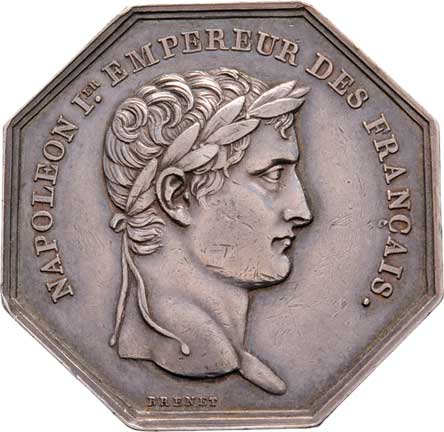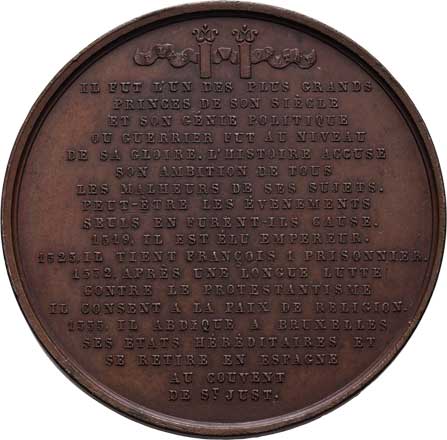 zprava, franc.opis / Heraklovy sloupy, 19-řádkový nápis, Sign., měď 46mm, 40.831g, nep.hr., skvr., pat. |