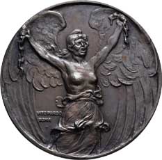 Victoria trhá okovy / dva znaky, vavříny, nápis, Nepunc., Ag 45mm, 42.552g, pův.etue s nálepkou uvnitř |