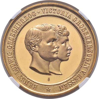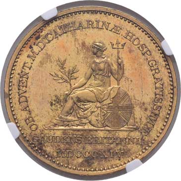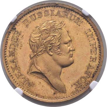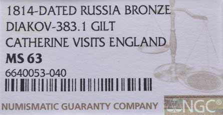 ve Velké Británii 1814, Diakov.383, zlacená mosaz 35 mm, zataveno v etui NGC (MS63), patina, téměř R! |