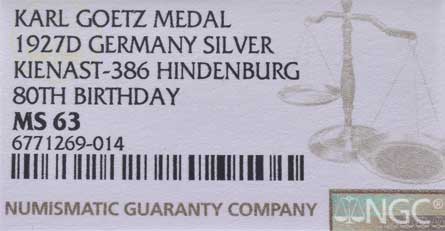 | 1086. | Goetz - 80.narozeniny presidenta Hindenburga 1927,