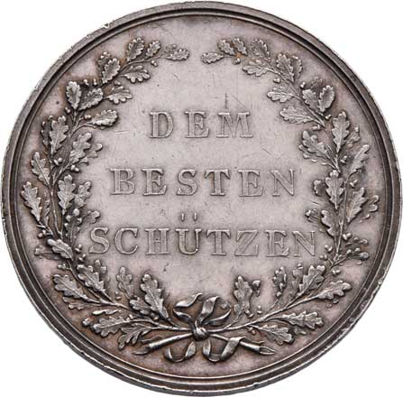 opis / 3-řádkový nápis ve věnci (nejlepšímu střelci), Nesign., Nepunc. (Ag750), 37mm, 21.732g, rys., patina |