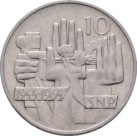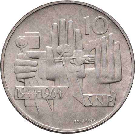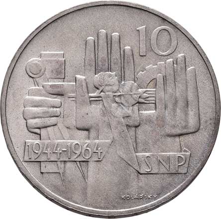 1702. 10 Koruna 1964 - 20 let SNP, KM.56 (Ag500, 108.367