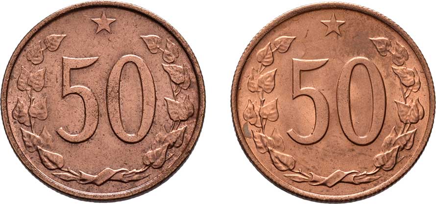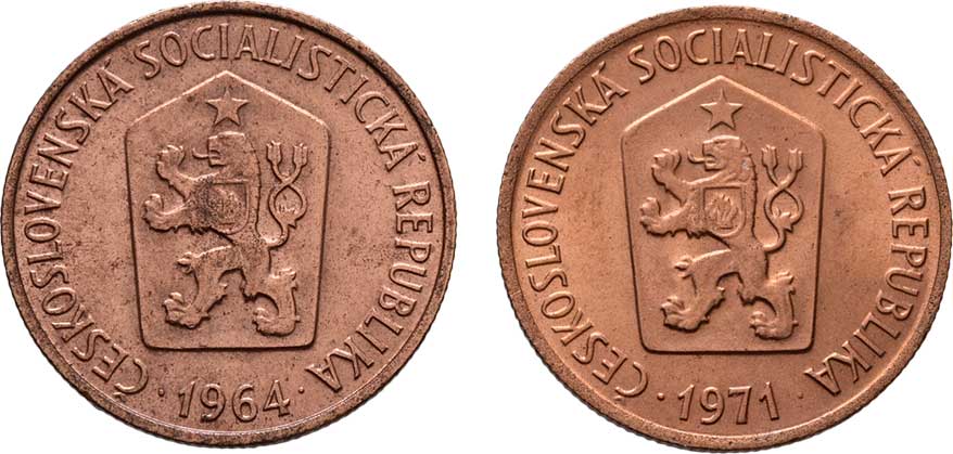 1713. 50 Haléř 1964, 1971, KM.55.1 (bronz), 3.053g, 3.040g,