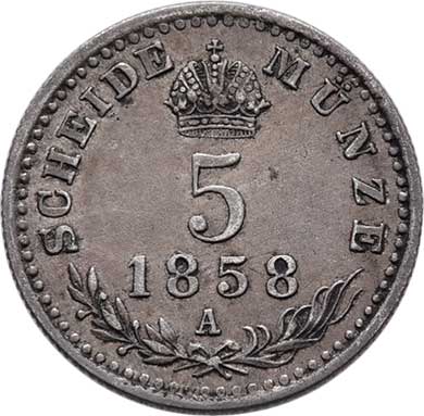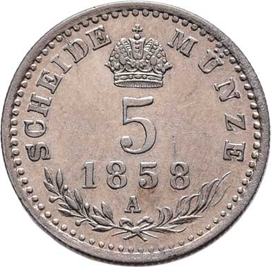 | 2104. | 5 Krejcar 1858 A, 1.310g, nep.hr., nep.rysky, pěkná