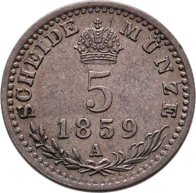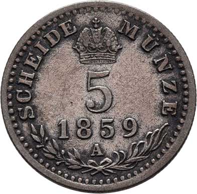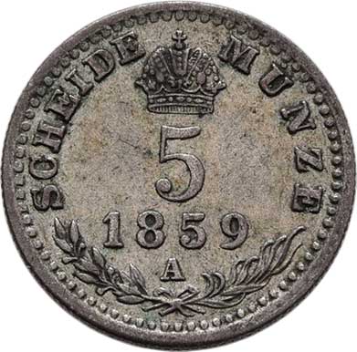 | 2106. | 5 Krejcar 1859 A, 1.327g, nep.hr., nep.rysky,